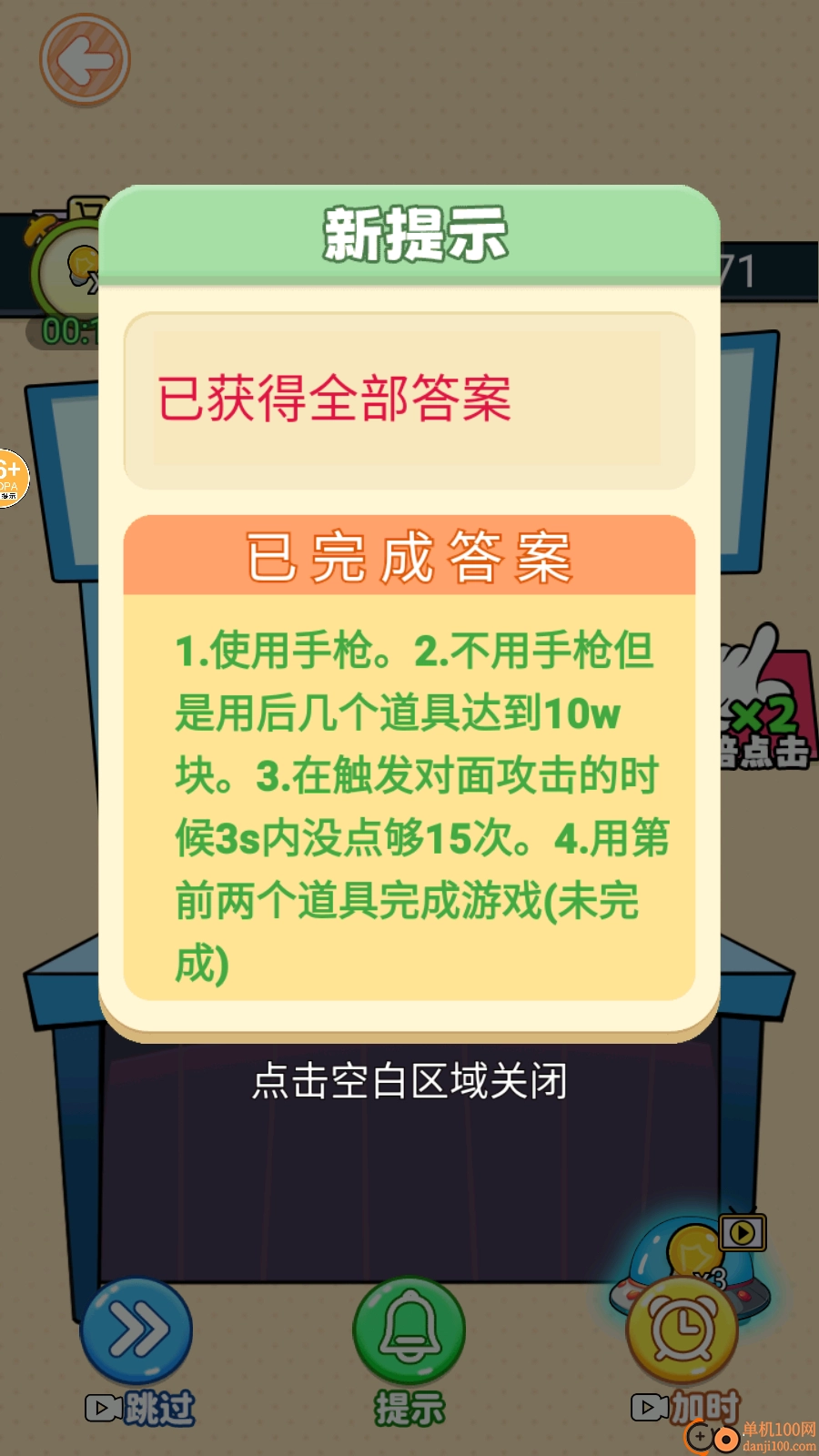 在游戲內可以查看相關提示內容,也能顯示各關卡的答案以及道具的使用方式。