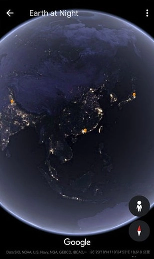 可以去查看地球上任意一處地方的夜景景色哦。