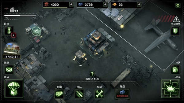 開始執(zhí)行任務后,首先要規(guī)劃部隊的部署地點。需要注意的是,紅圈標注的高塔區(qū)域禁止部署部隊。建議優(yōu)先觀察可掠奪資源附近的建筑布局,同時計算每個障礙物與資源點之間的距離,并明確任務的具體目標要求。在任務過程中,應盡可能達成目標以獲取更多資源——其實前期任務的難度都比較低,完成后獲得的寶箱有機會開出5.56毫米機槍、MP5沖鋒槍、火炮等裝備,還能獲得等級經驗。另外,點擊戰(zhàn)隊圖標可以查看所有武器和設施,其中紅色標識的代表尚未獲得的物品。