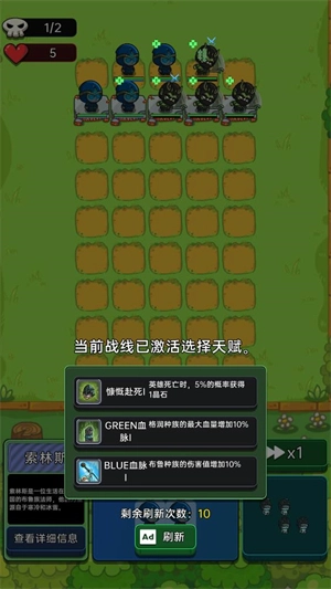 按照從上到下的順序擺放角色,第二排和第三排不要安排二級角色;在布置陣型的同時開啟增益效果,增益優(yōu)先選擇吸血類,其次可以考慮血礦采集速度的;要是關(guān)卡里沒有反傷怪,就選攻速增益;如果實在沒有合適的,就拿防御或者血量相關(guān)的增益。
