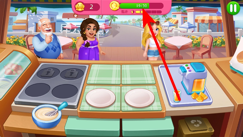 通過(guò)給客人提供餐品之類的方式來(lái)積累金幣,金幣越積越多的話,就能推動(dòng)關(guān)卡進(jìn)度,一步步接近完成當(dāng)前關(guān)卡的目標(biāo)。