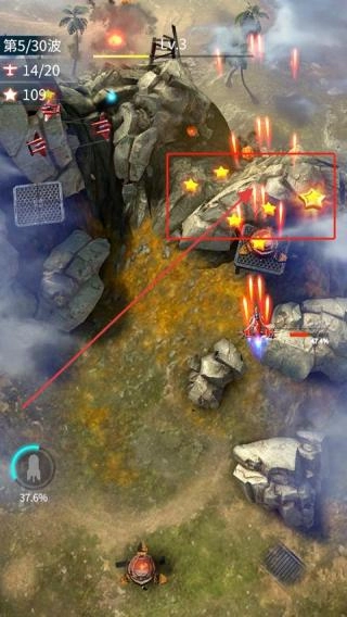 進入主界面后,留意屏幕上方顯示的波次、等級等相關信息,接著操控戰(zhàn)機進行移動和射擊,以此消滅敵方飛機。