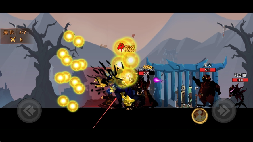 當面對馬路法師、屠夫這類多個敵人時,要靈活移動,借助左右方向按鈕來避開敵人的攻擊。