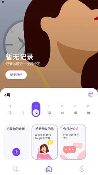 首頁(yè):記錄月經(jīng)周期,記錄你的身體癥狀,致新朋友的一封信 歡迎來(lái)到她扶Tough的世界,今日小知識(shí)——什么是月經(jīng)過(guò)少。