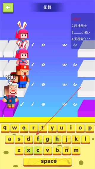挑戰(zhàn)規(guī)則是依據(jù)上方給出的漢字提示,在下方的鍵盤上輸入對(duì)應(yīng)的拼音字母,率先抵達(dá)終點(diǎn)的人就能獲勝。