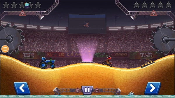 撞頭賽車?yán)习姹具@款賽車游戲操作十分簡單,玩家只需左右滑動屏幕,就能控制車輛前進(jìn)、后退,還能調(diào)整平衡與翻轉(zhuǎn)狀態(tài)。部分賽道設(shè)置了各式各樣的機(jī)關(guān)和障礙物,為玩家?guī)砀S富的驚喜與刺激體驗(yàn)。