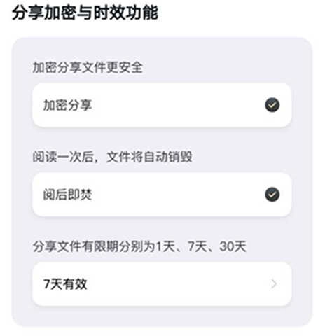 若想進一步保障隱私安全,可選用加密分享功能,同時設(shè)置分享的有效時長。