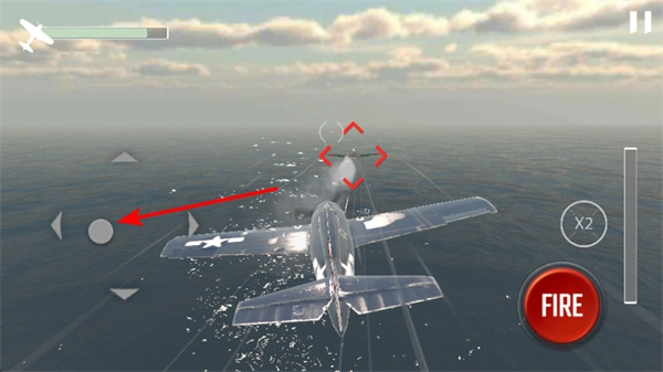 靈活操控戰(zhàn)機(jī),借助左側(cè)的操控按鈕,靈活調(diào)整戰(zhàn)機(jī)的移動(dòng)方向,追蹤敵方目標(biāo),保證操作連貫。