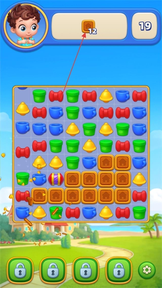 進(jìn)入游戲關(guān)卡后,留意上方顯示的目標(biāo)數(shù)值(比如12),以此明確需要完成的消除任務(wù)。