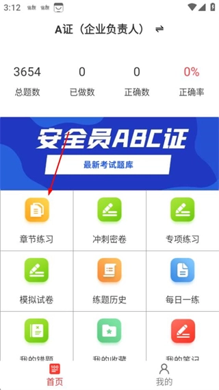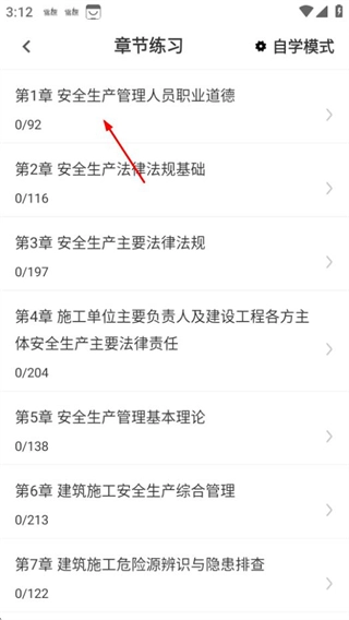 在安全員百分題庫的首頁,找到并點(diǎn)擊“章節(jié)練習(xí)”選項(xiàng),即可進(jìn)入章節(jié)練習(xí)頁面。