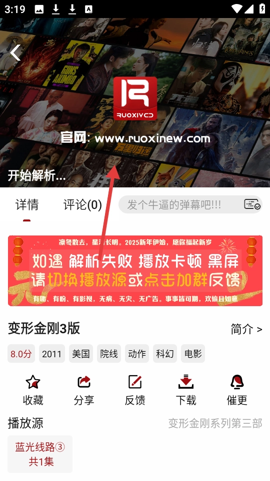 進(jìn)入播放頁面后,等解析完成就能觀看《變形金剛3版》了。