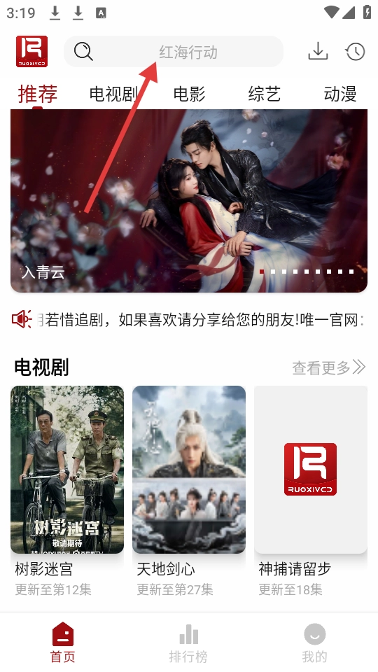 進(jìn)入軟件,點(diǎn)擊應(yīng)用頂部的搜索框,進(jìn)入搜索頁面。