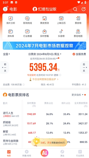 淘票票專業(yè)版是一款面向電影從業(yè)者的價(jià)值數(shù)據(jù)服務(wù)產(chǎn)品。依托阿里生態(tài)的海量用戶數(shù)據(jù)資源,它能夠?yàn)殡娪叭颂峁┟爰?jí)更新的實(shí)時(shí)票房、排片占比、影院運(yùn)營(yíng)動(dòng)態(tài)、上映檔期日歷以及精準(zhǔn)用戶畫像等多元化數(shù)據(jù)支持,不僅拓寬了電影行業(yè)的數(shù)據(jù)觀察維度,更有效助力從業(yè)者提升決策的速度與精準(zhǔn)度。