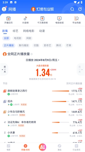 淘票票專業(yè)版也叫燈塔專業(yè)版,它為電影愛好者呈現(xiàn)更直觀的電影收視大數(shù)據(jù)分析,借助實(shí)時(shí)票房剖析電影行業(yè)的發(fā)展走向,同時(shí)也能更清晰地了解用戶的觀影偏好等信息。該平臺(tái)不僅可以統(tǒng)計(jì)各熱門電影的票房數(shù)據(jù)、用戶喜愛度,還會(huì)不定期推出各類福利與優(yōu)惠活動(dòng),提供最優(yōu)質(zhì)的服務(wù),助力用戶盡情享受觀影樂(lè)趣。