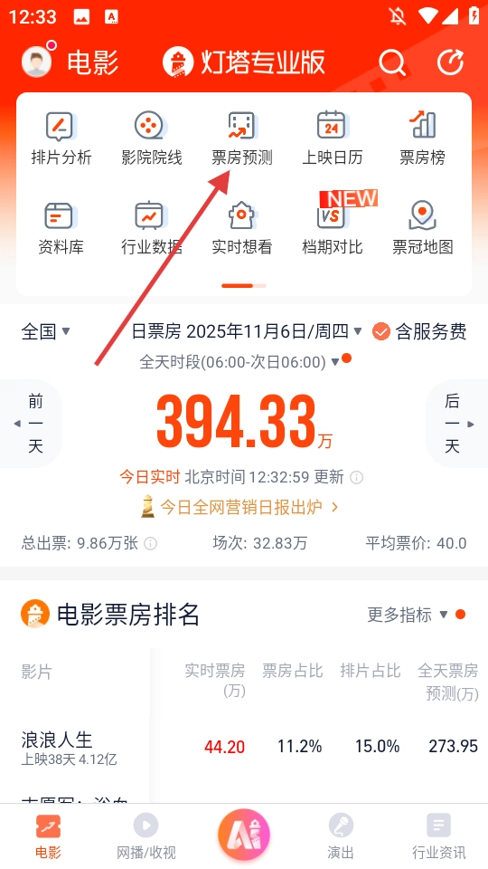 在首頁(yè),點(diǎn)擊【票房預(yù)測(cè)】。