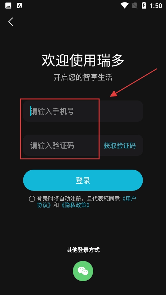 輸入手機(jī)號(hào)和驗(yàn)證碼。