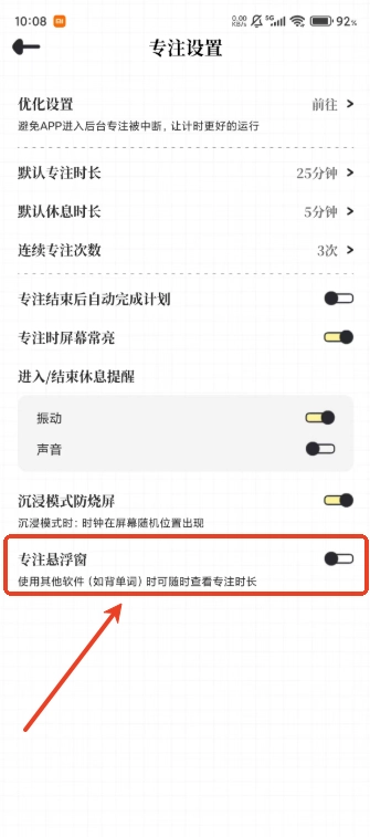 開啟懸浮窗功能,這樣就能在計時的同時,使用其他軟件進(jìn)行學(xué)習(xí)了。