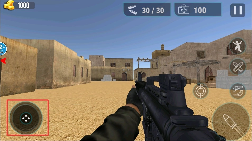 通過滑動左側(cè)屏幕來操控角色移動,同時要積極尋找最理想的狙擊位置,并且記得借助草叢與巖石來進行隱蔽。