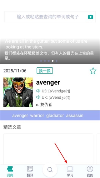在進(jìn)入必應(yīng)詞典首頁后,找到頁面底部的學(xué)習(xí)選項(xiàng)并點(diǎn)擊,即可進(jìn)入學(xué)習(xí)頁面。