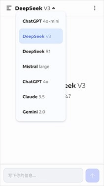 點(diǎn)擊頂部DeepSeekV3右側(cè)的三角按鈕就能切換接口。