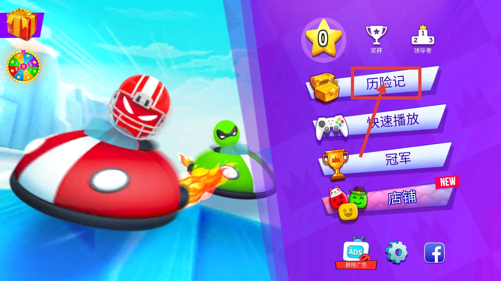 在主界面找到并點擊【歷險記】選項,即可進入對應(yīng)的游戲模式,開啟一場充滿樂趣的碰碰車冒險之旅,盡情體驗趣味十足的對戰(zhàn)玩法。