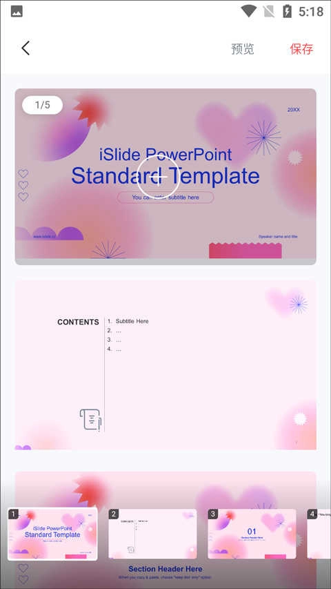 iSlide最新版是一款專門為安卓用戶開發(fā)的高效PPT工具,融合了海量資源、智能功能和便捷操作,僅需一部手機,就能隨時隨地制作出專業(yè)級別的演示文稿。軟件界面簡潔明了,操作流暢順手,就算是PPT新手也能迅速掌握使用方法。它擁有豐富的PPT模板、主題、圖示以及圖表資源,覆蓋了商務(wù)匯報、學(xué)術(shù)答辯、產(chǎn)品發(fā)布、營銷推廣等多種應(yīng)用場景!