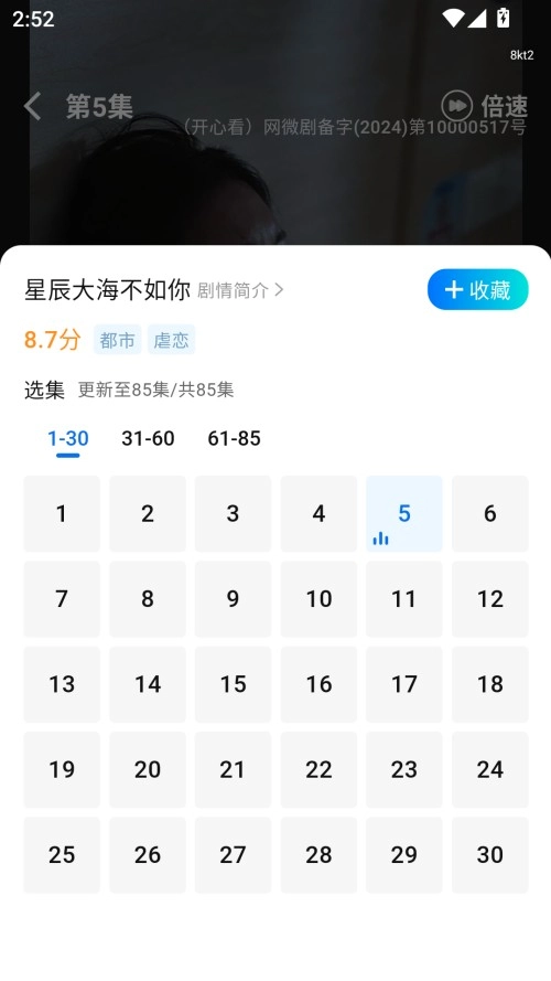 用戶可選擇集數(shù),如果喜歡這部短劇點擊收藏,下次好找。