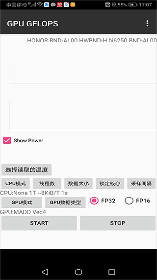 打開軟件后,用戶能夠查看手機(jī)GPU的實(shí)際功率消耗情況,隨后可以挑選一個(gè)功率數(shù)值來開展測(cè)試。