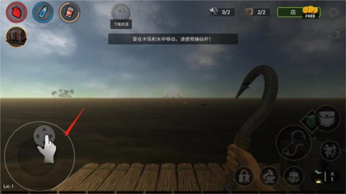 如果想在木筏和水中移動(dòng),使用操縱桿控制;