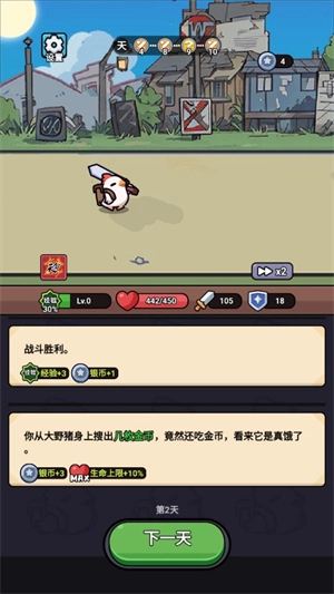 然后點(diǎn)擊“下一天”按鈕就能推進(jìn)劇情,每一天都可能隨機(jī)觸發(fā)不一樣的事件。