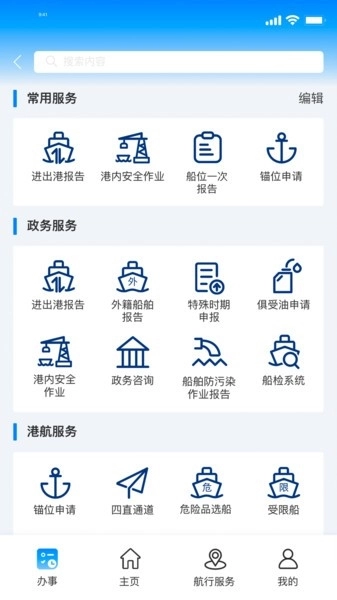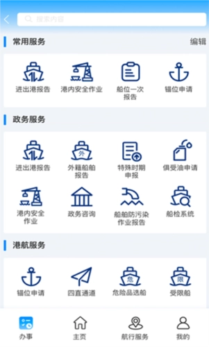 海事通可辦理船舶進出港報告、領(lǐng)海報告、安全作業(yè)及船舶檢驗等相關(guān)業(yè)務(wù)。