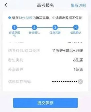 選擇高考報名,看到提示需要在指定時間內(nèi)填寫完畢。