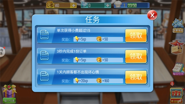制作訂單時(shí),界面上方會(huì)呈現(xiàn)目標(biāo)要求與時(shí)間限制,只要在規(guī)定時(shí)間內(nèi)依照顧客的具體需求完成訂單,就能獲得相應(yīng)的小費(fèi)。