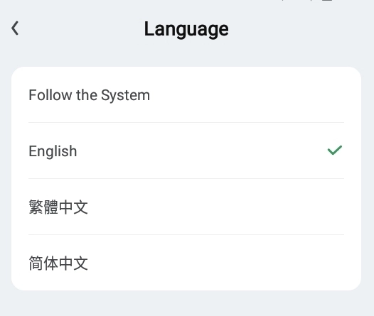 在此頁面可選擇將語言設置為繁體中文或簡體中文。
