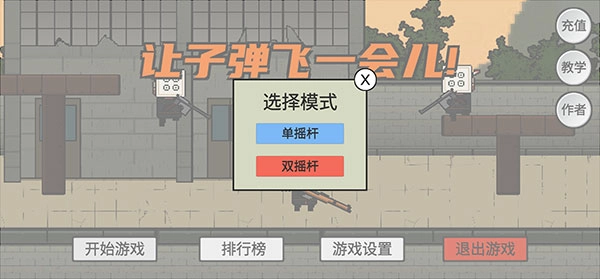 :火山哥哥讓子彈飛的游戲具有高難度的雙遙感操作,讓玩家可以適應(yīng)不同的控制操作,提高自己手部協(xié)調(diào)能力。打開(kāi)讓子彈飛,點(diǎn)擊“開(kāi)始游戲”。