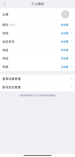 最后在個人資料頁面把各項信息填寫完整,將地區(qū)、學(xué)校、年級都填好后,就能進(jìn)入班級了。