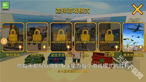 游戲提供多種玩法模式,涵蓋捉迷藏模式、競(jìng)技場(chǎng)模式以及吃雞模式。