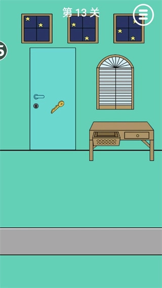 窗戶上的星星和抽屜上的密碼是一一對(duì)應(yīng)的,把沒(méi)有星星的位置在抽屜上補(bǔ)全,打開(kāi)抽屜取出鑰匙,然后開(kāi)門(mén)。