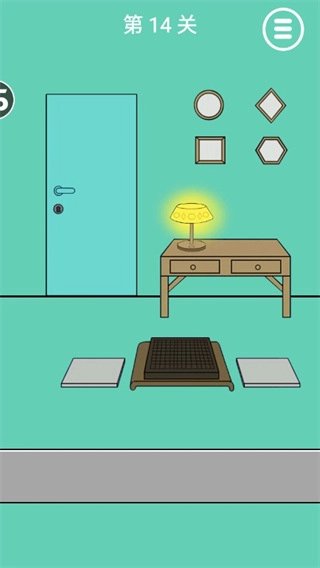 根據(jù)密碼鎖的圖形提示來(lái)推導(dǎo)密碼,從內(nèi)到外依次是三角形、圓形、正方形、菱形。在房間內(nèi)尋找這些形狀,結(jié)果是3個(gè)三角形、3個(gè)圓形、5個(gè)正方形和1個(gè)菱形。因此密碼為(3351),輸入該密碼解鎖開(kāi)門(mén)就行。