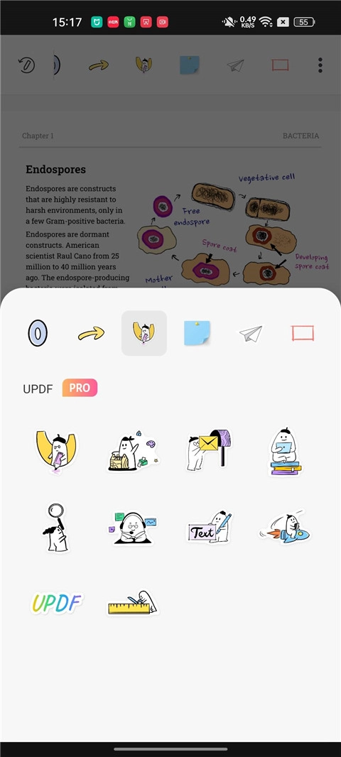 若想在PDF文檔里添加貼紙,可點(diǎn)擊UPDF頂部欄中的“貼紙”圖標(biāo)。