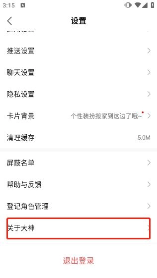 如圖所示,下滑點擊"關(guān)于大神"。