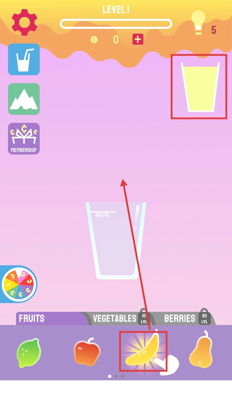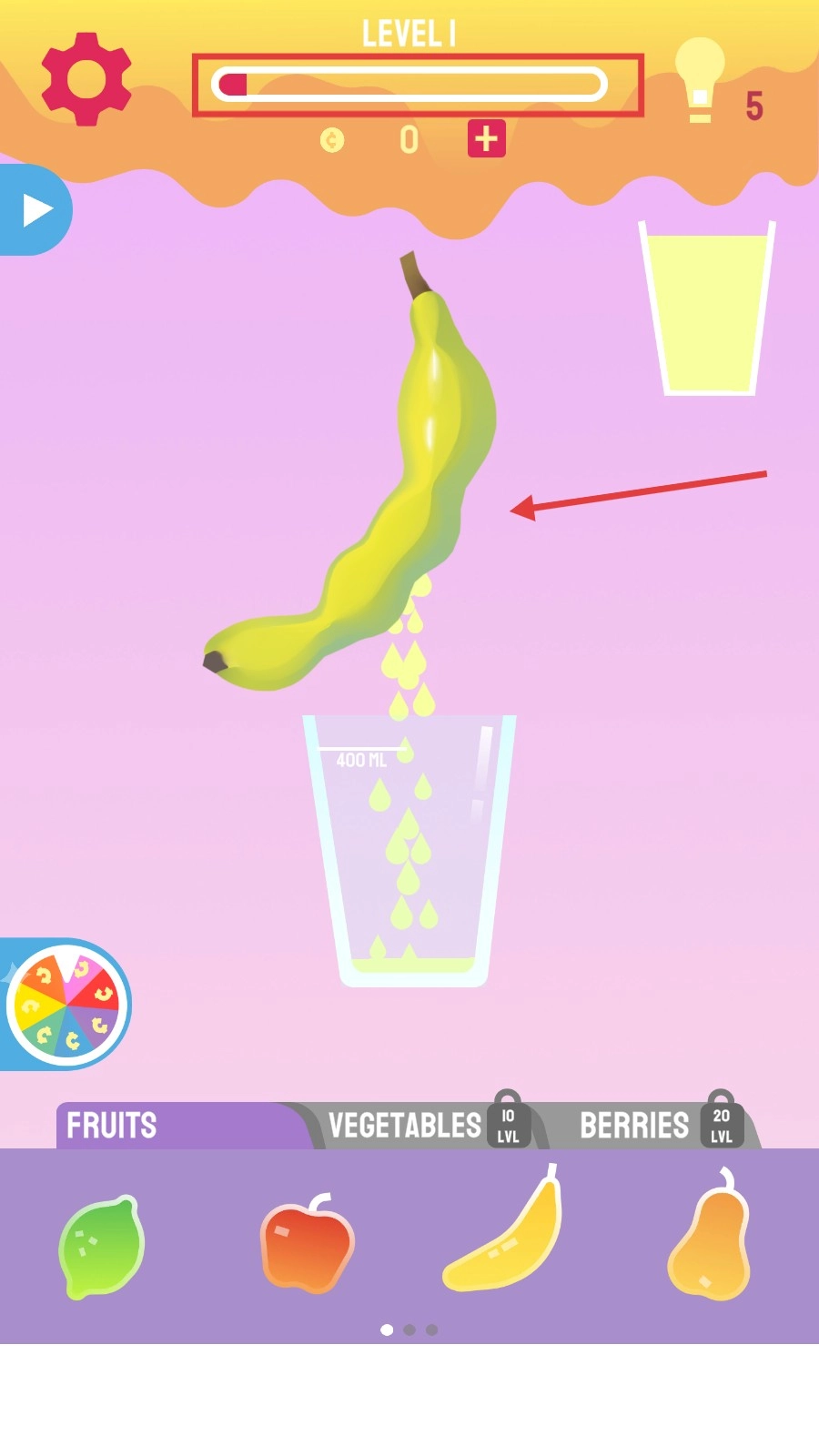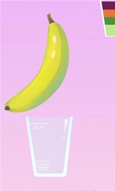 按壓你選中的香蕉,使果汁滴進杯子里,注意觀察上方的進度條,當果汁的量和目標一致時就可以了。