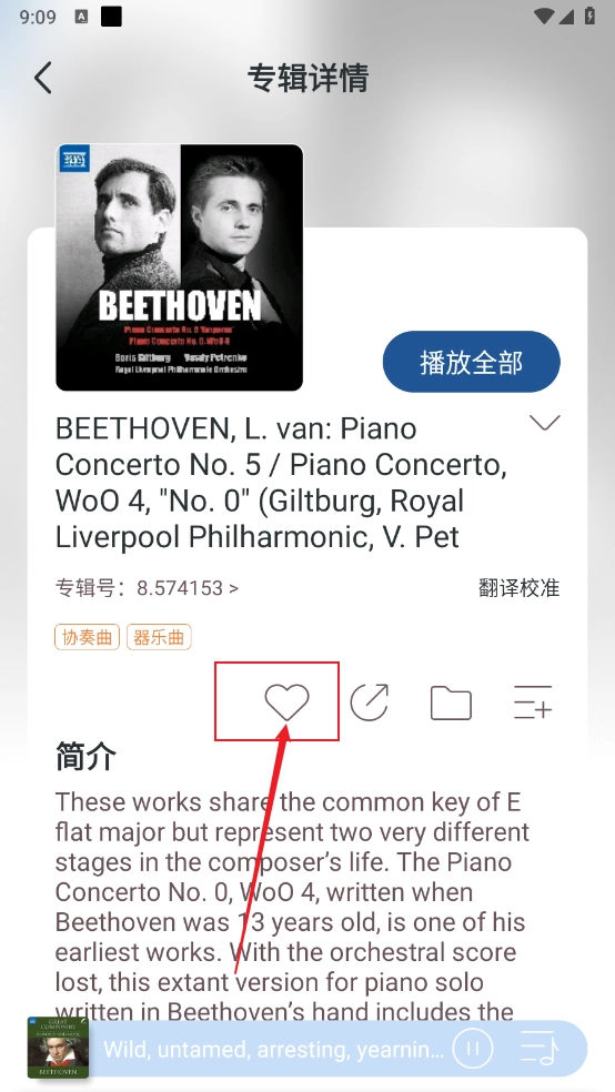 在專輯詳情頁嗲積極小愛心進(jìn)行收藏,如圖所示。