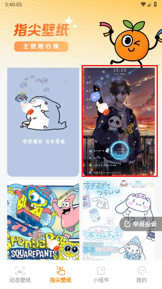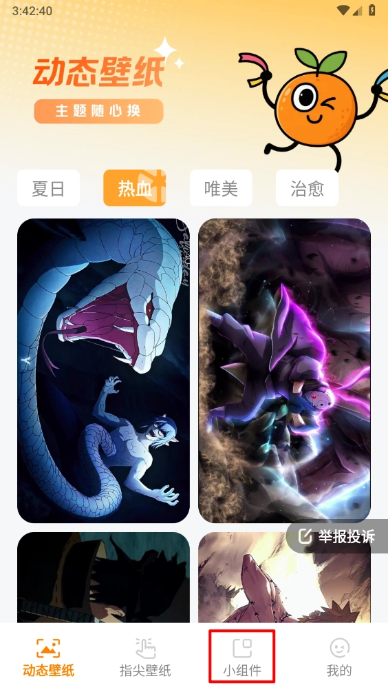 打開甜橙壁紙軟件,在主頁點擊"小組件"進入。