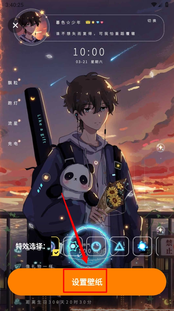 一鍵進入壁紙詳情頁,這里提供多種特效供你挑選,選擇后點擊“設(shè)置”即可完成壁紙設(shè)置。