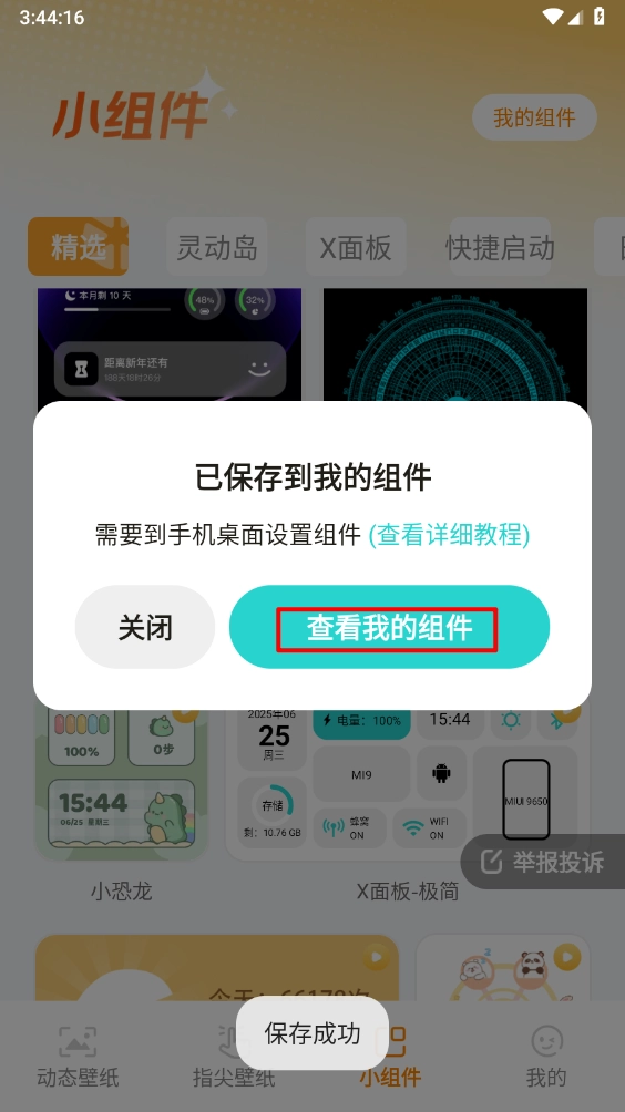 在小組件詳情頁點擊"保存到我的組件"即可。