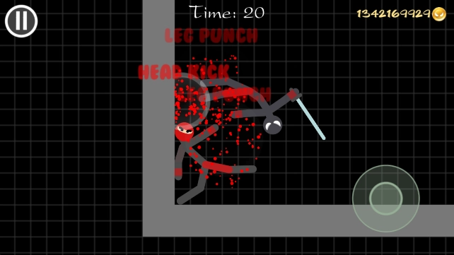 進入戰(zhàn)斗后,通過右側(cè)的搖桿操控火柴人戰(zhàn)斗。