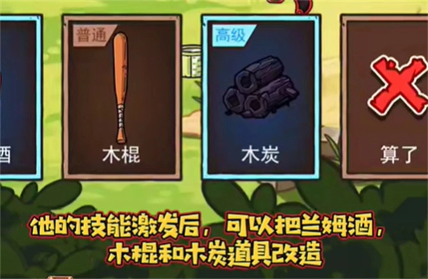 只要成功觸發(fā)這個技能,短時間內就能對蘭姆酒、木棍、木炭這些道具進行改造。