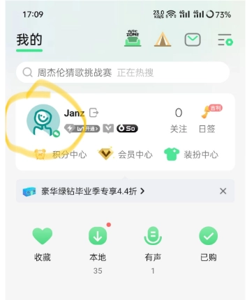 進(jìn)入qq音樂頁面,點(diǎn)擊頭像,如圖。