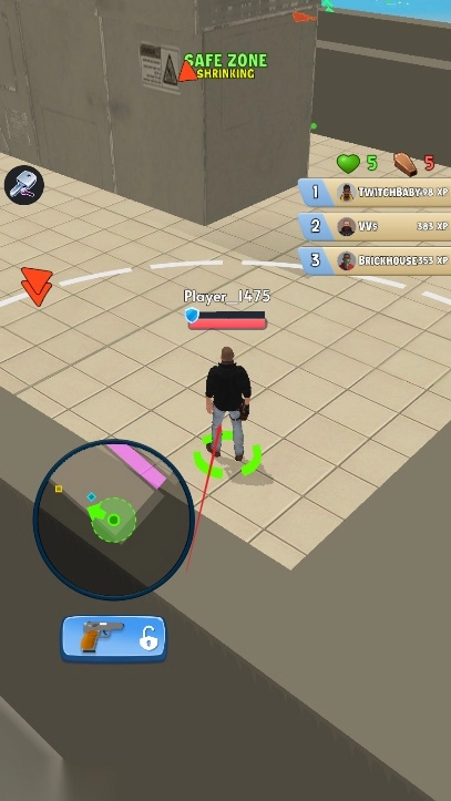 設(shè)計層面:單搖桿操作與自動戰(zhàn)斗的組合,在移動端達(dá)成了“易上手難精通”的平衡,既兼顧新手玩家,也給資深玩家預(yù)留了戰(zhàn)術(shù)施展空間。持續(xù)收縮的競技場范圍設(shè)計,可有效防止后期戰(zhàn)斗“拖沓”,始終維持比賽的緊張感,場景細(xì)節(jié)(比如屋頂障礙物、資源刷新點(diǎn))的規(guī)劃也為戰(zhàn)術(shù)執(zhí)行提供了更多可能。
